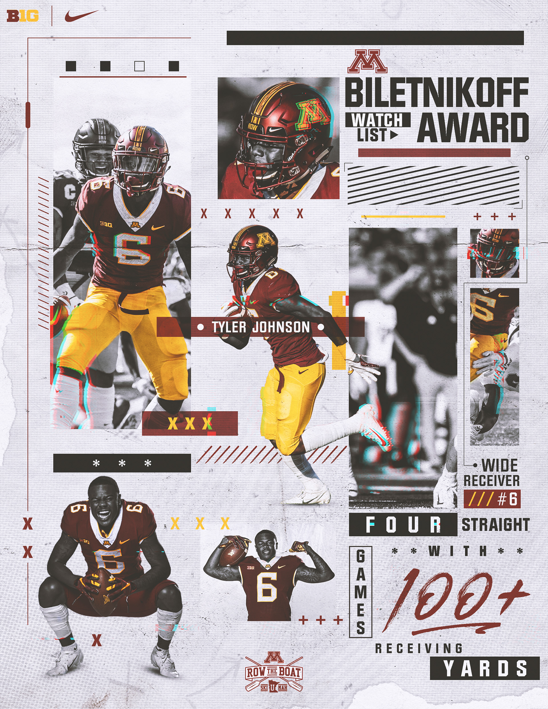 In 2018 I was lucky enough to have the opportunity to intern for the University of Minnesota Gopher Football program. This is some of the work I created during the 2018 season.